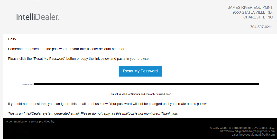 CDK will send you an email with instructions on how to reset your password. It should look something like this: