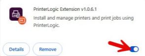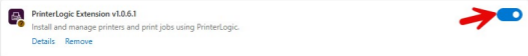Find the PrinterLogic Extension and make sure it is turned on: