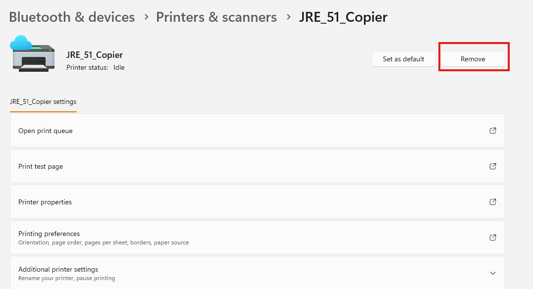 Select printer you wish to remove