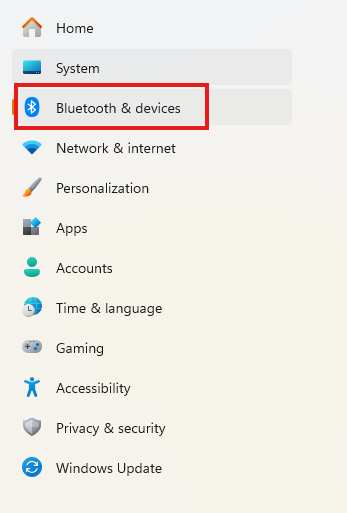 Select Bluetooth & devices from navigation bar on the left