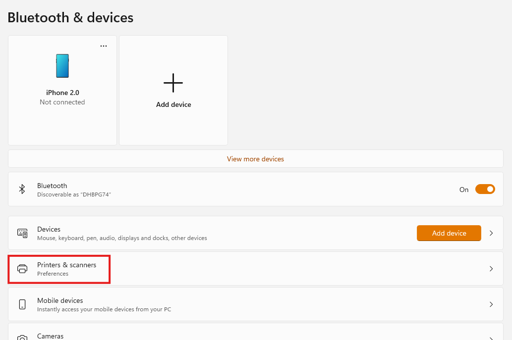 Select Printers and scanners