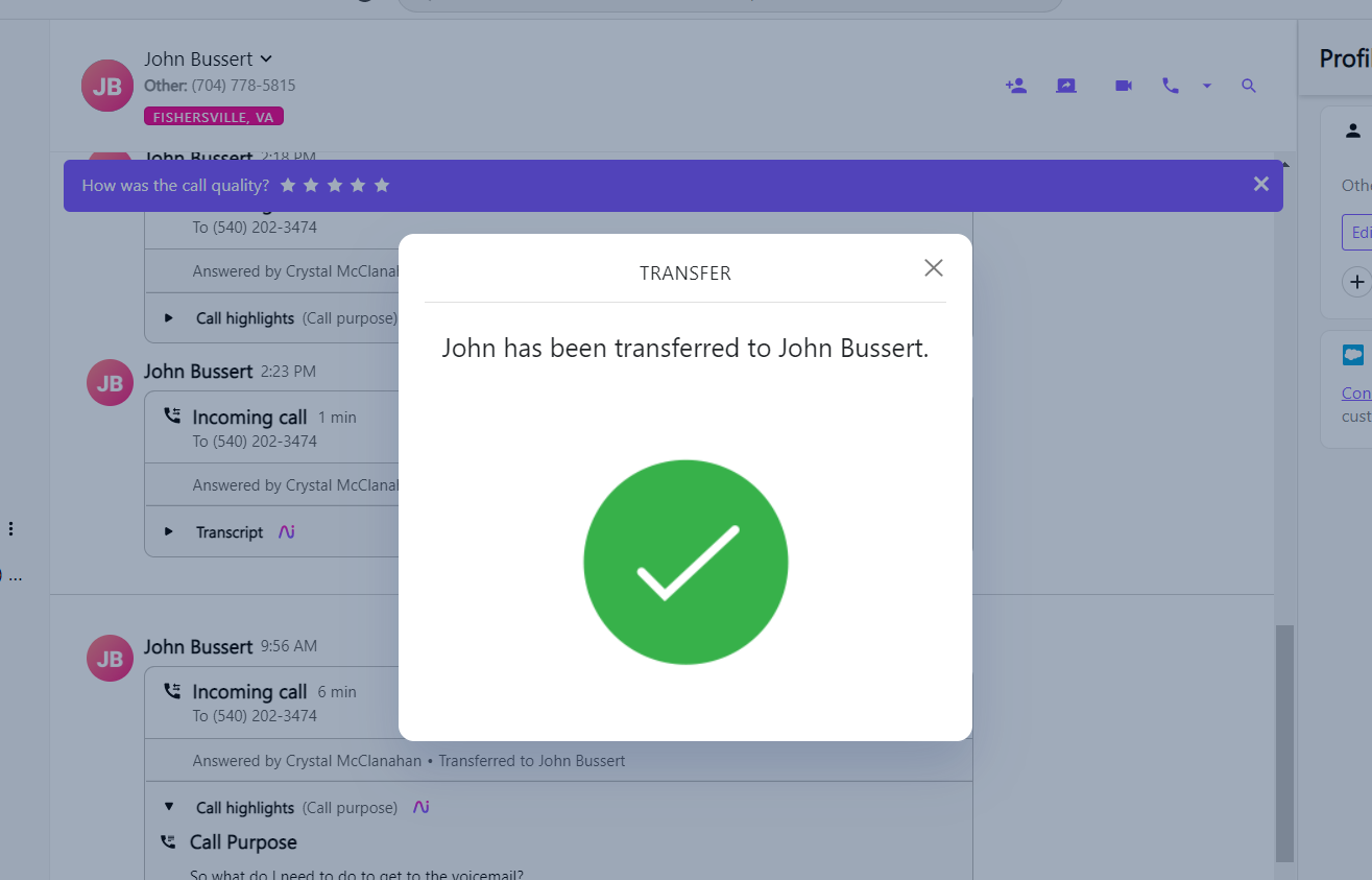 - Look for the 'Transfer [Callers Name/Number] to [Users] voicemail: