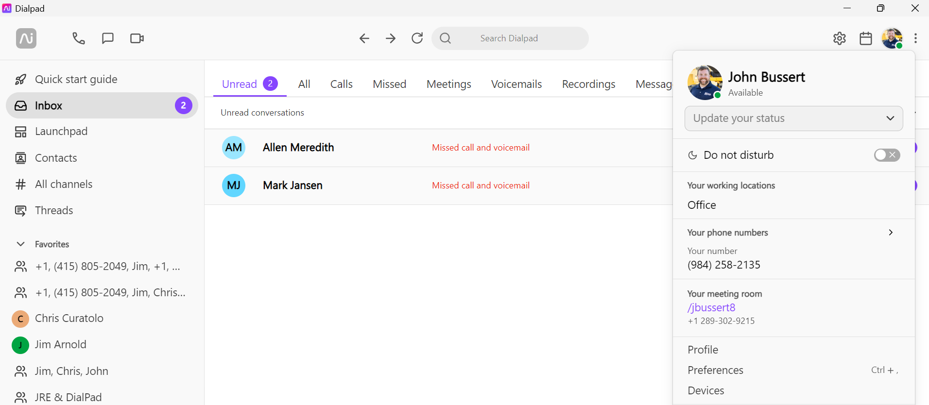From the Dialpad App on your computer