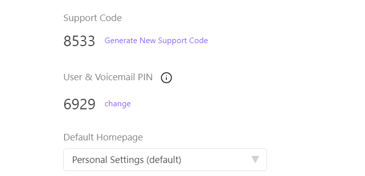 - Scroll down to User & Voicemail PIN