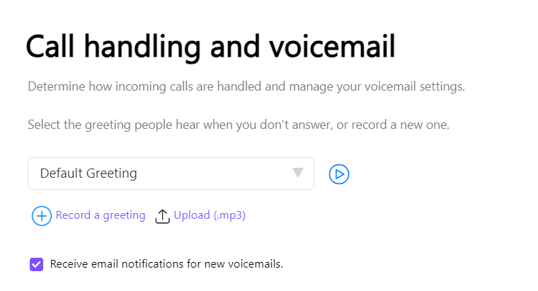 - Check the box here that says 'Receive email notifications for new voicemails'