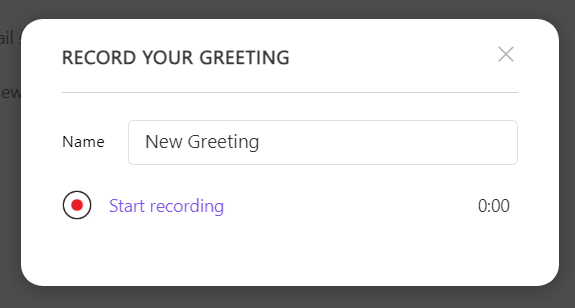 - Name the Greeting and then click Start recording