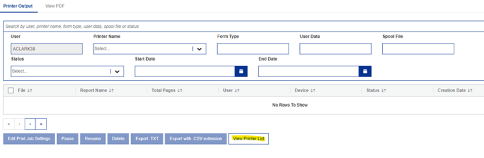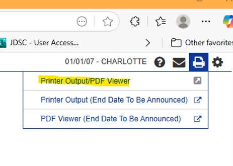 Click on printer icon in top right corner and select Printer Output/PDF Viewer dropdown