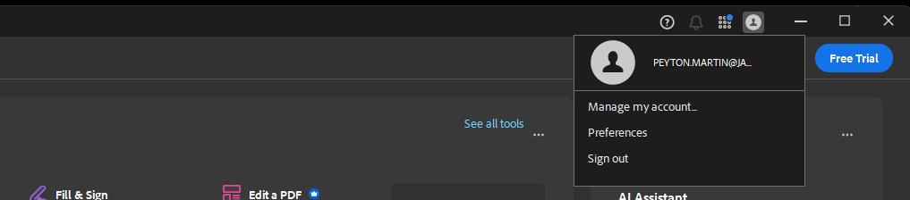Once the sign in completes you should be good to go; to confirm you can click the account information icon in the top right corner, and you should see your primary email address there.