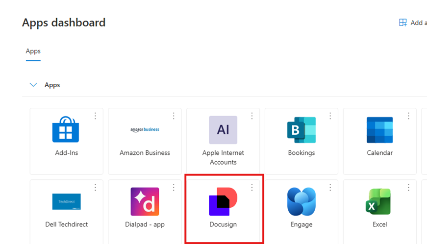 3. Click on “DocuSign” from the list of apps available. This will lead you to the DocuSign sign in page.